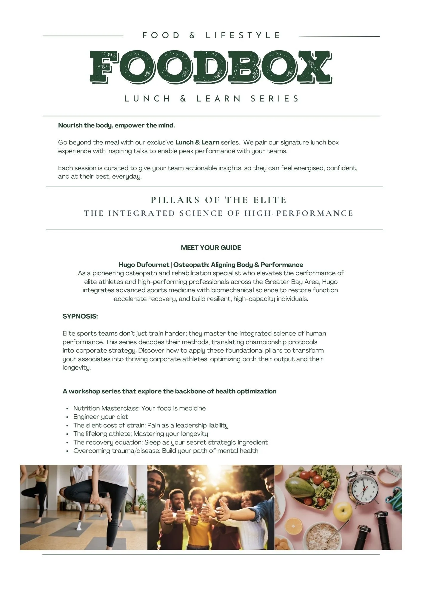 A workshop series that explore the backbone of health optimization →Nutrition Masterclass: Your food is medicine